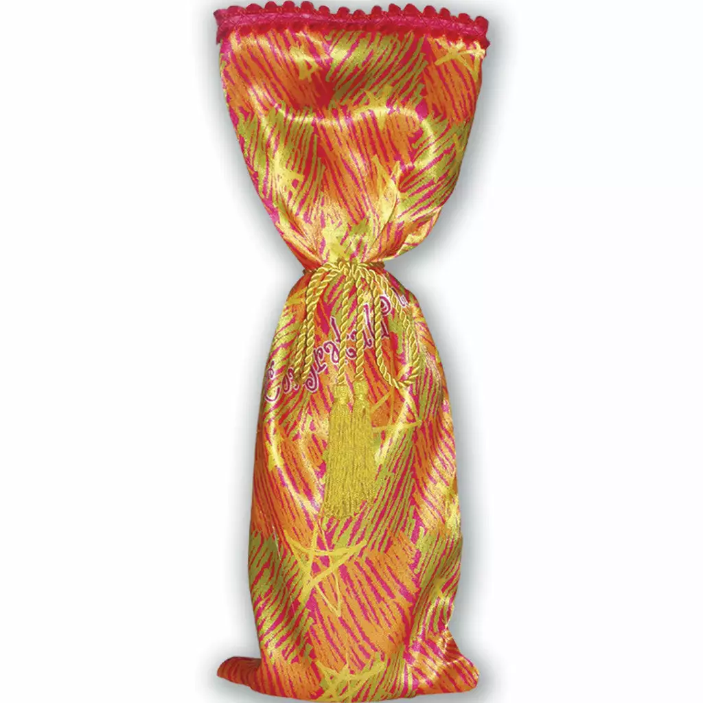 Luxurious satin fabric with soft touch; fully lined with trim and tassles.
