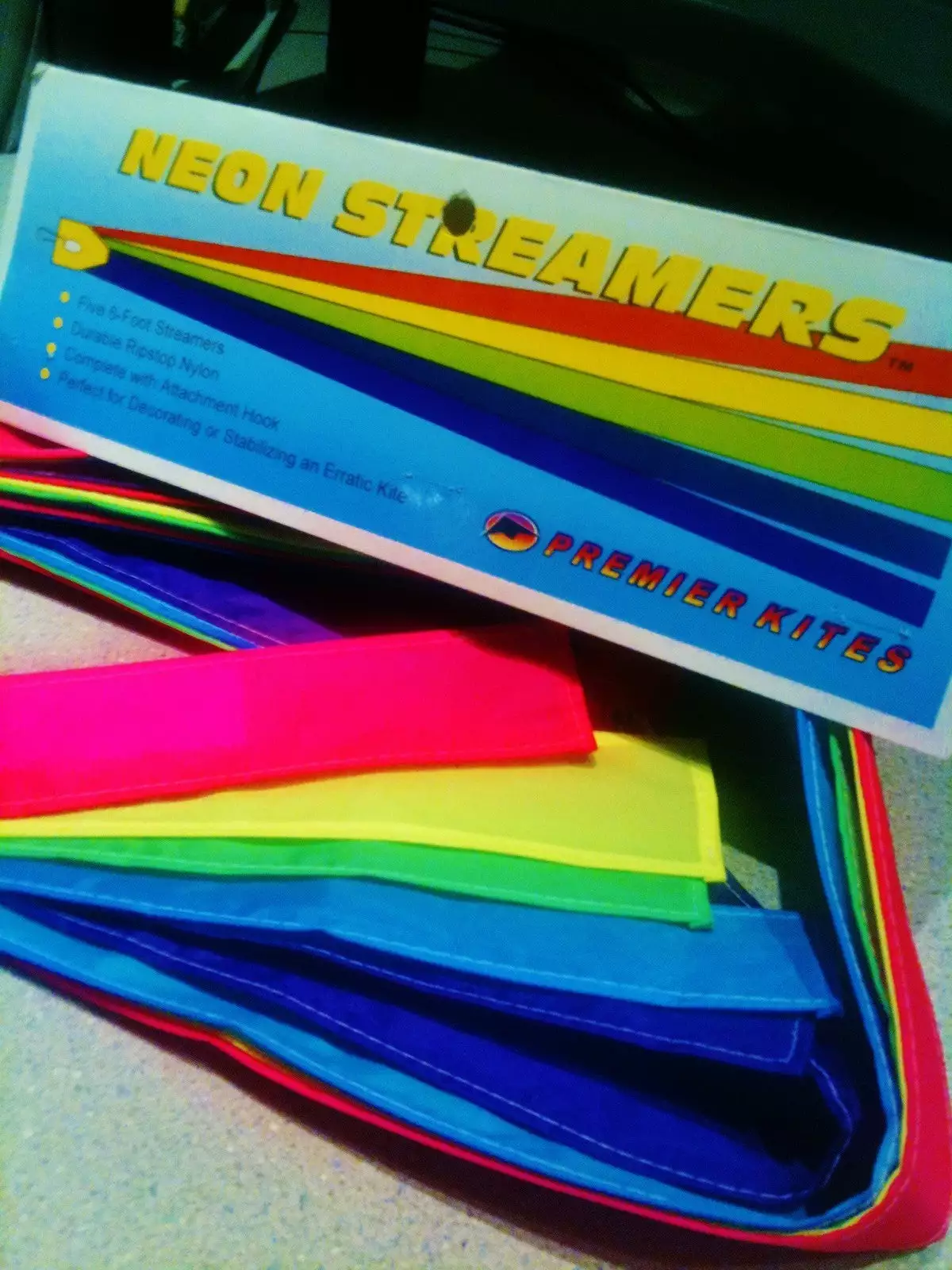 These hemmed ripstop nylon tails are very colorful and extremely durable. Metal attachment clip included.