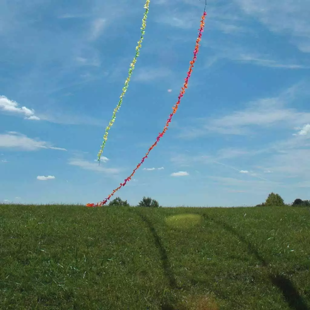 Fuzzy Tails are a great way to add pizzazz to any kite or kite line. They are also a perfect solution to help stabilize an erratic kite.