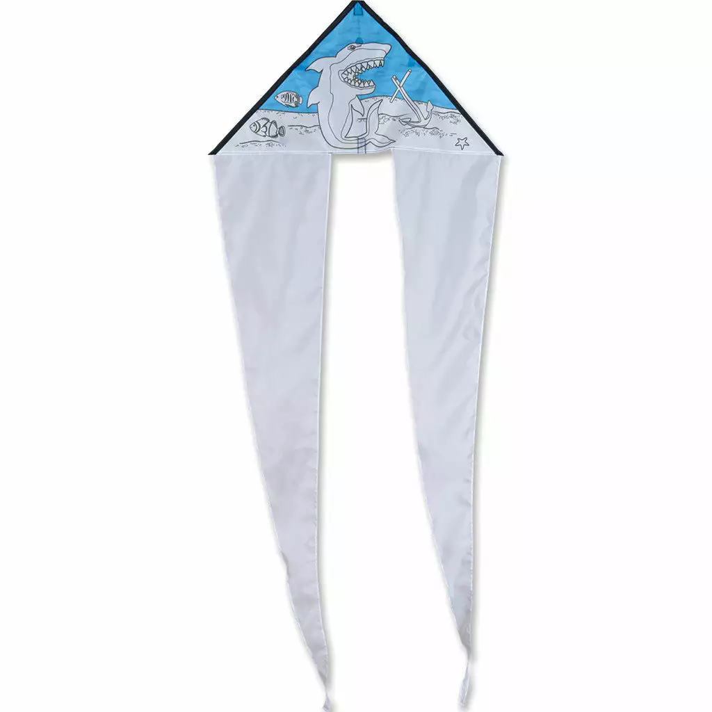 Premier’s Coloring Kites feature bold themes that are enjoyable to color and beautiful to fly. Some designs include background colors that are already pre-printed so anxious artists can finish their masterpieces for fast flying fun. All kites feature long flowing tails that can also be custom colored. Based on one of our most stable designs, artists will be proud to display their works high into the canvas of the sky. A set of eight crayons are provided; colored pencils and most markers will also work for coloring.