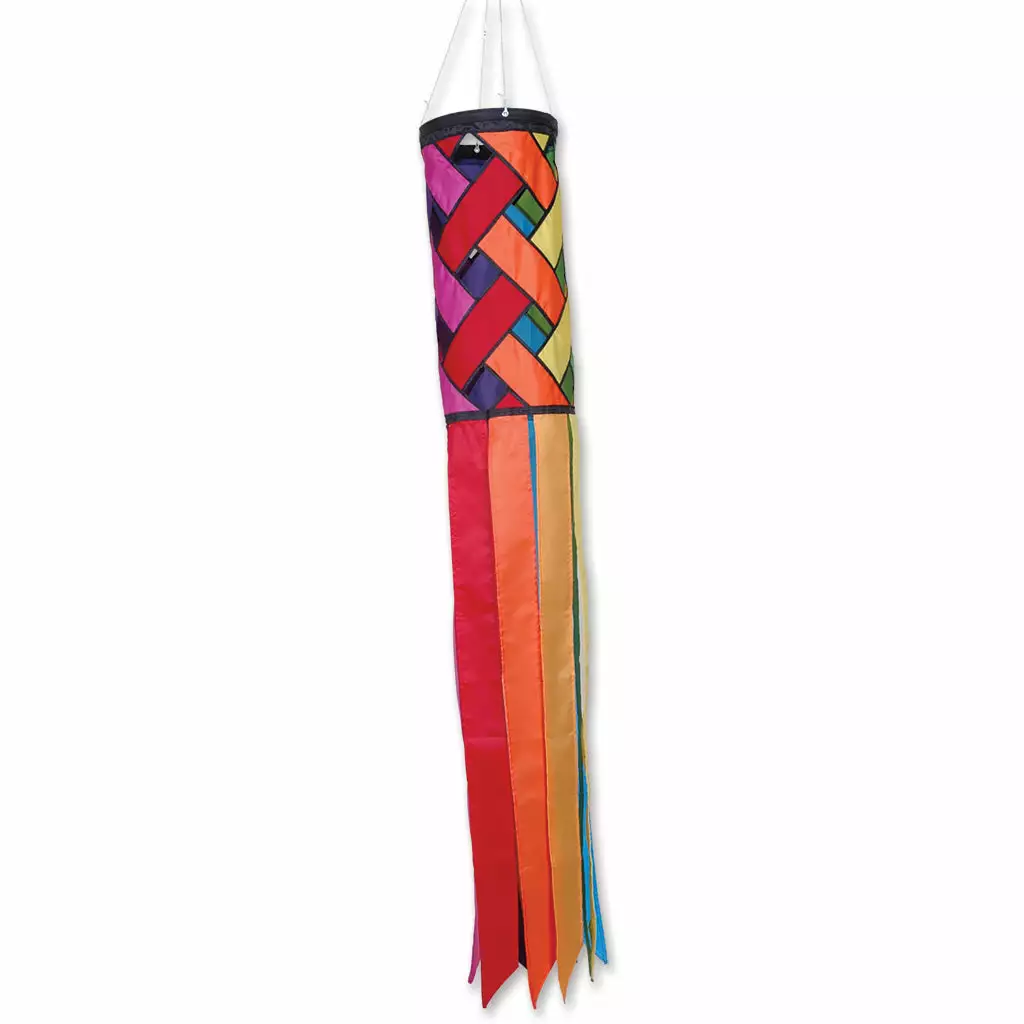 This windsock is beautifully stitched and woven in a lattice pattern.