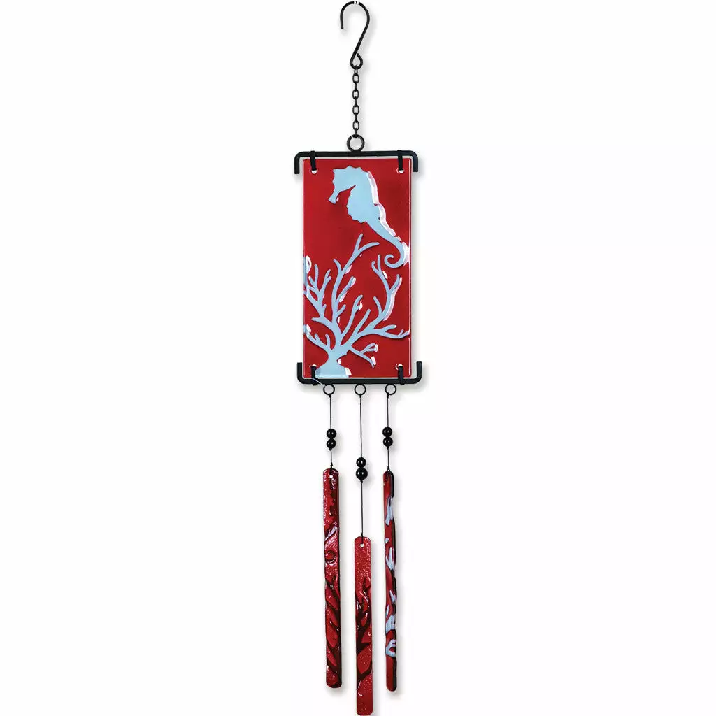 Simple yet sophisticated, Silhouette Glass Chimes add just the right amount of accent to any room in the home. Perfect for porches and any window, these glass chimes cast beautifully colored light and shadows throughout the house. The silhouettes are hand painted glass and kiln-fired to show handsome reliefs.