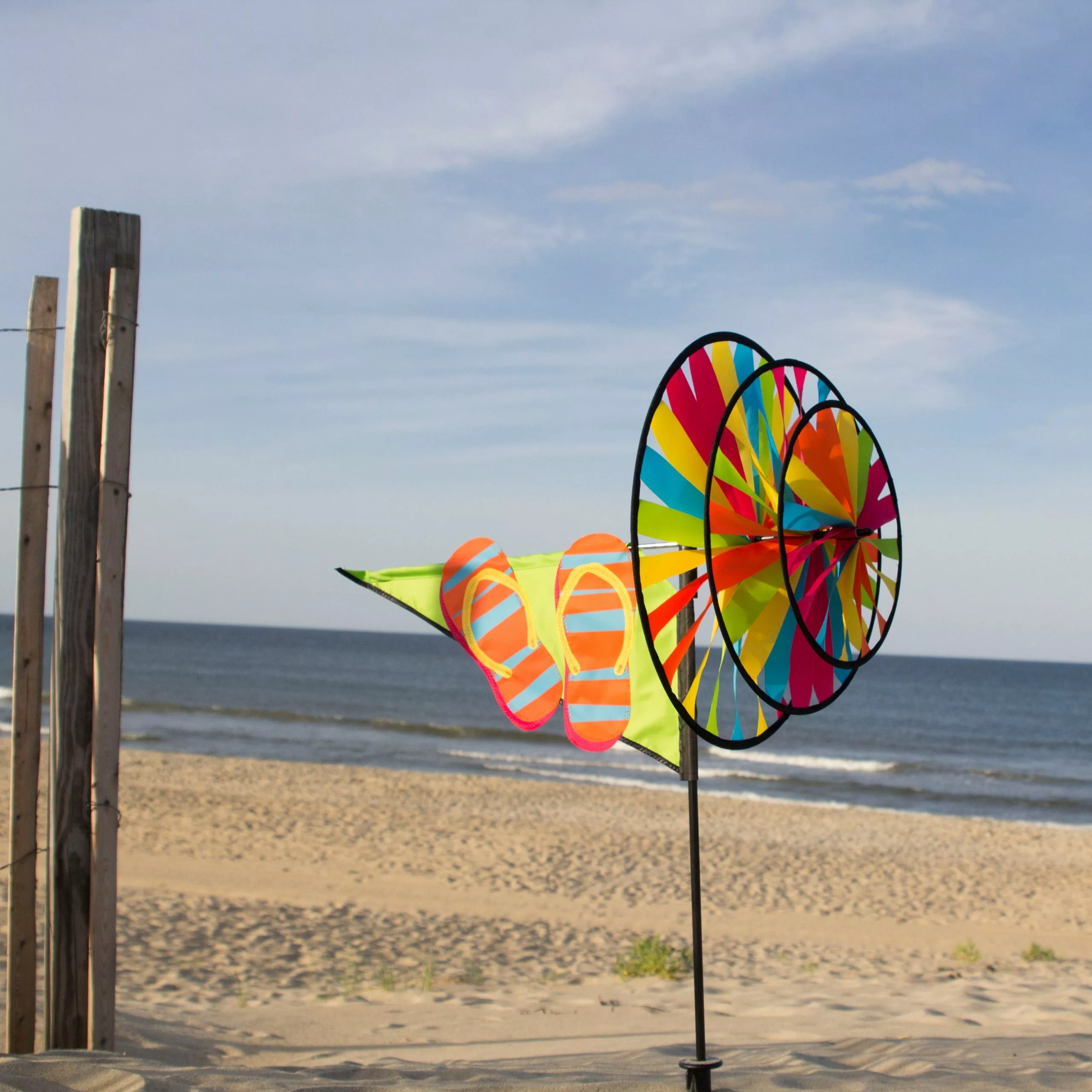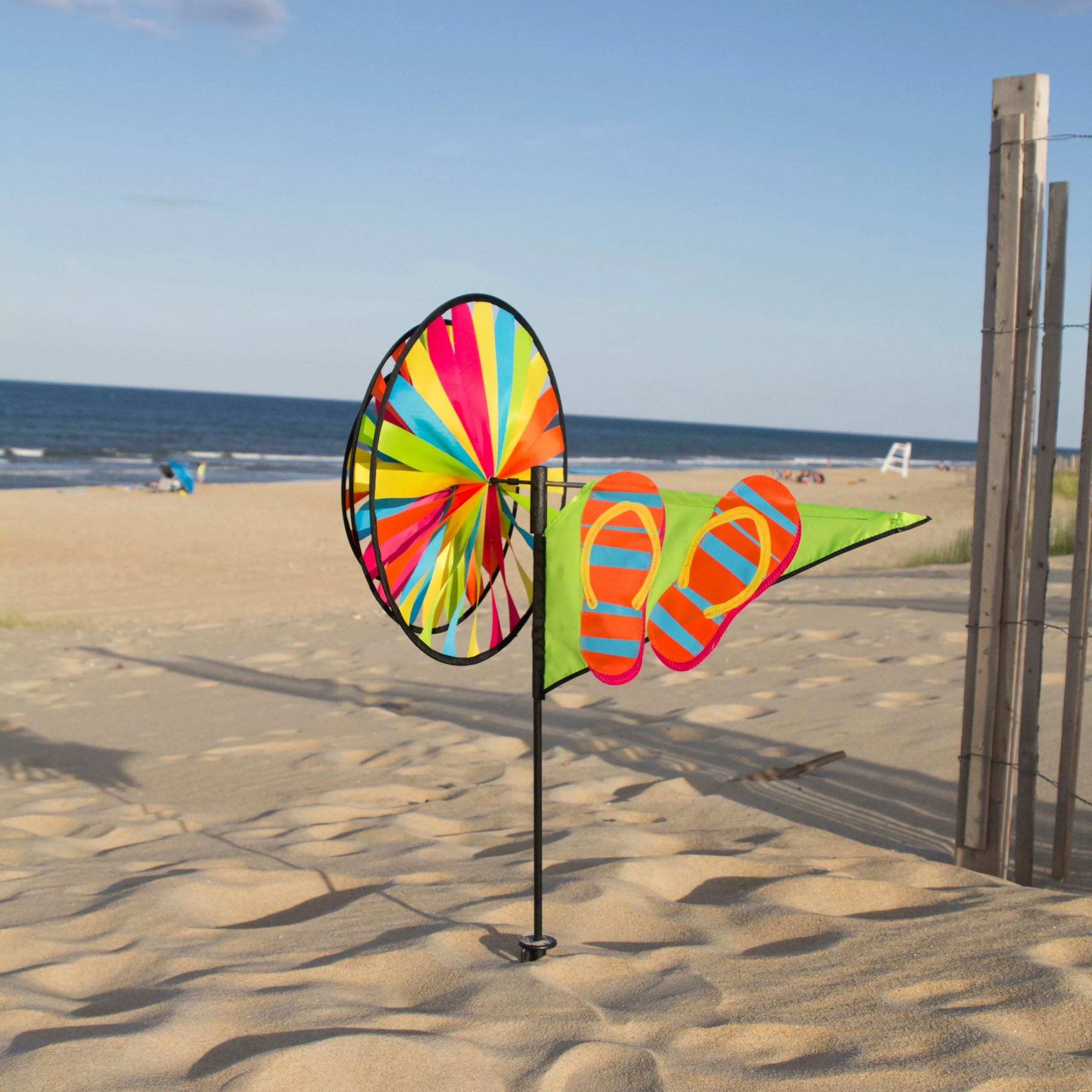 Made with fade-resistant SunTex(TM) fabric, our garden spinners will dazzle your yard. Unlike other ordinary spinners made with nylon or polyester, ours can withstand daily UV rays, rain and snow. Each spinner comes with two heavy-duty fiberglass poles and a ground stake.